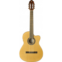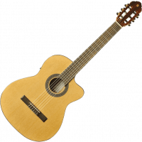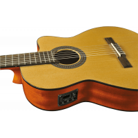La Vibra 150CW est fabriquée avec soin afin d'offrir aux guitaristes un confort de jeu idéal et une belle sonorité équilibrée. La table d'harmonie est en cèdre et le dos et les éclisses en acajou laminé, offrant une bonne précision, un sustain intéressant et rendu sonore clair et chaleureux à la fois. Le manche est en acajou sélectionné, et la touche en roupanà sud américain, présentant une bonne tenue dans le temps. L'ensemble dispose d'une finition naturelle brillante du plus bel effet. Le préampli intégré permet une amplification simple et efficace de votre son.