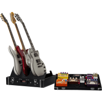 Les musiciens qui tournent avec leurs groupes le savent bien, chaque centimètre est précieux dans le coffre d'une voiture ou d'un van. Gator l'a également bien compris. Avec le GW-GIGBOXJR, vous disposez d'un pedalboard classique à la finition soigné, mais également d'un stand pouvant accueillir jusqu'à 3 guitares. Pour cela il suffit simplement de retourner le couvercle et d'installer le dispositif qui se trouve à l'interieur.